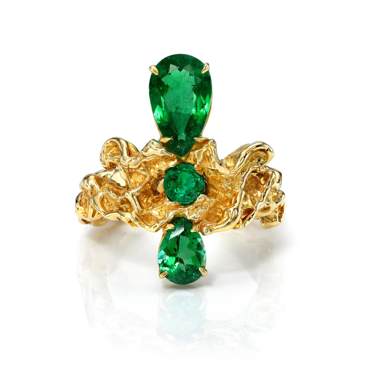 5cts of Colombian Emeralds align in a signature Ribbon Band in 22k yellow gold.