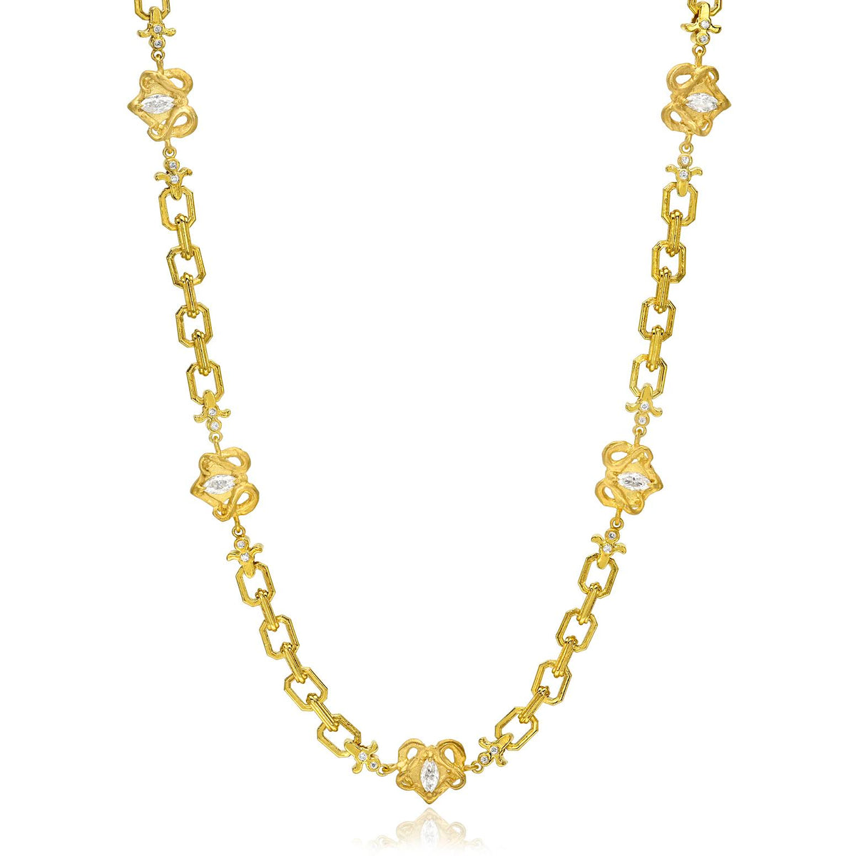 5.3cts of d-vvs 1 marquise diamonds in a large genie's rope 18k royal gold chain links finished with a hand crafted adalioryn 18k box clasp.
