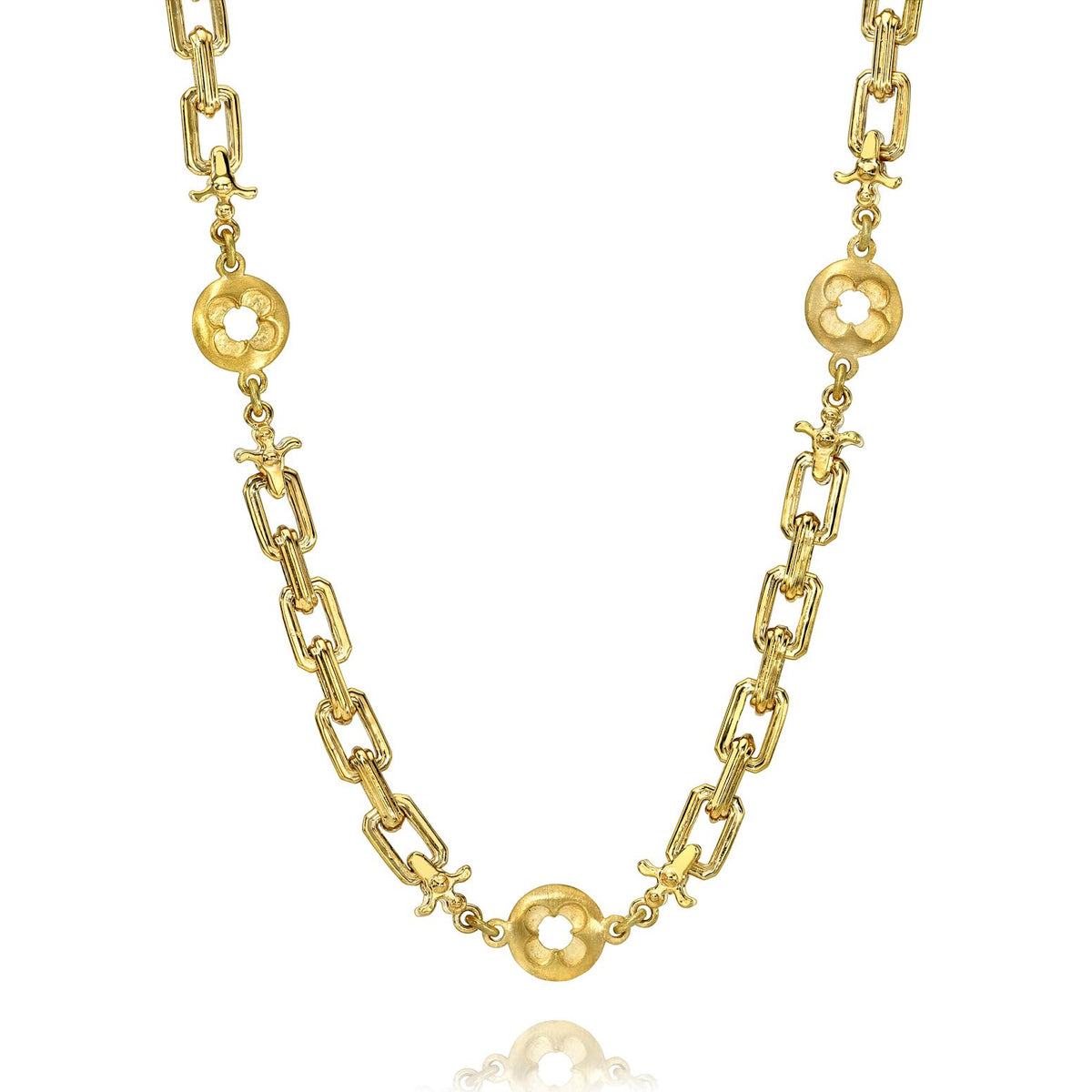 a signature AdaLioryn chain, ornate chain links are help together by the sword charms, with delicate breathing portal links.
